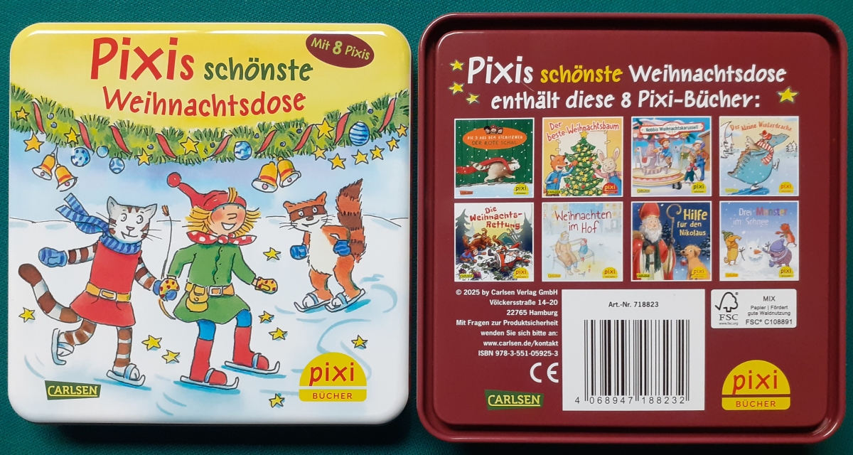 Nummernangaben der Pixireihe und dem Hinweis auf der vorderen inneren