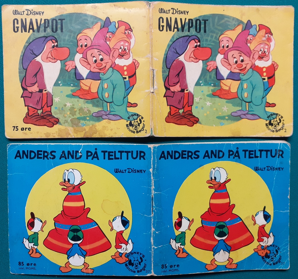 durchgehend farbig bebilderte Hefte im Querformat 9,5 x 10,5 cm in dänischer Sprache aus den frühen 1970er Jahren.