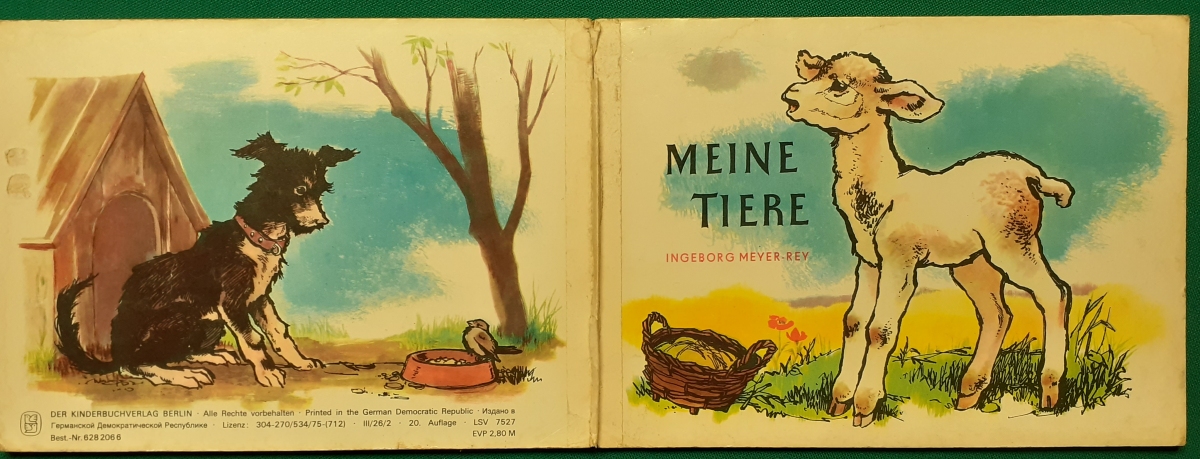 Meine Tiere Kinderbuchverlag Berlin, Ausgabe um 1975, 12 Seiten stabiler Hartkarton; sehr schöne Illustrationen von Ingeborg Meyer-Rey; fester Hartpappeinband im Format 16 x 22 cm; etwas an den Buchkanten bestoßen; recht guter altersgemäßer Zustand Preis: 5 EUR Hier zur Illustratoren-Galerie mit typischen Arbeiten von Ingeborg Meyer-Rey |