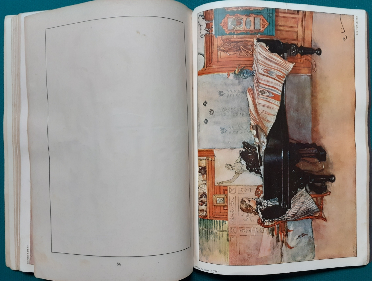 Druck von Carl Larsson Lisbeth Druck im Wechselrahmen hinter Glas; zweimal dicke Glasscheiben; Format 30 x 18 cm; ohne Passepartout hat das eigentliche Bild das Format 28 x 15,5 cm; guter altersgemäßer Zustand. Preis: 5 EURO |