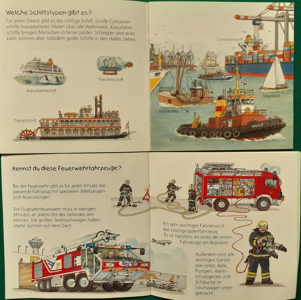 | Text von Claudia Toll; illustriert von Stefan Seelig | Was ist los bei der Feuerwehr? | 3. Aufl. 2007; sehr guter altersgemäßer Zustand | 1,50 |
