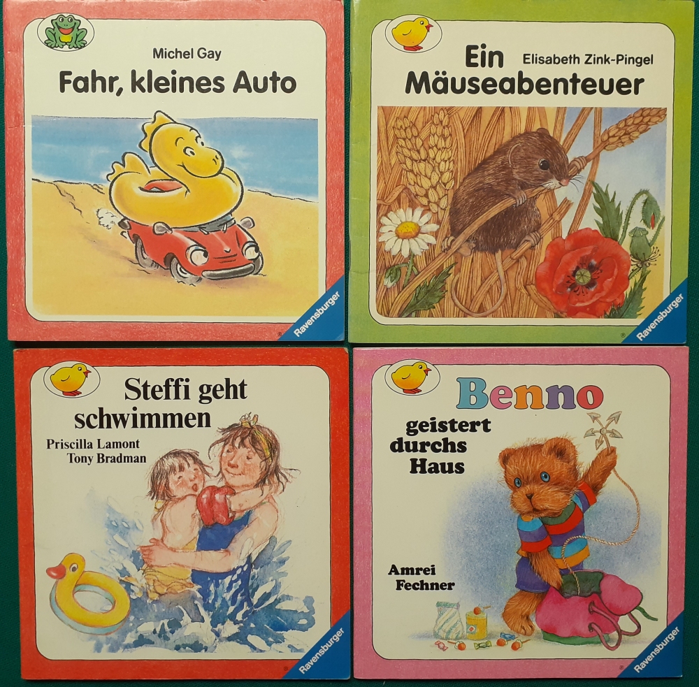 Es handelt sich um geheftete Bilderbücher im Format 15 x 15 cm, rundum glanzlackiert; innen durchgehend farbig illustriert.