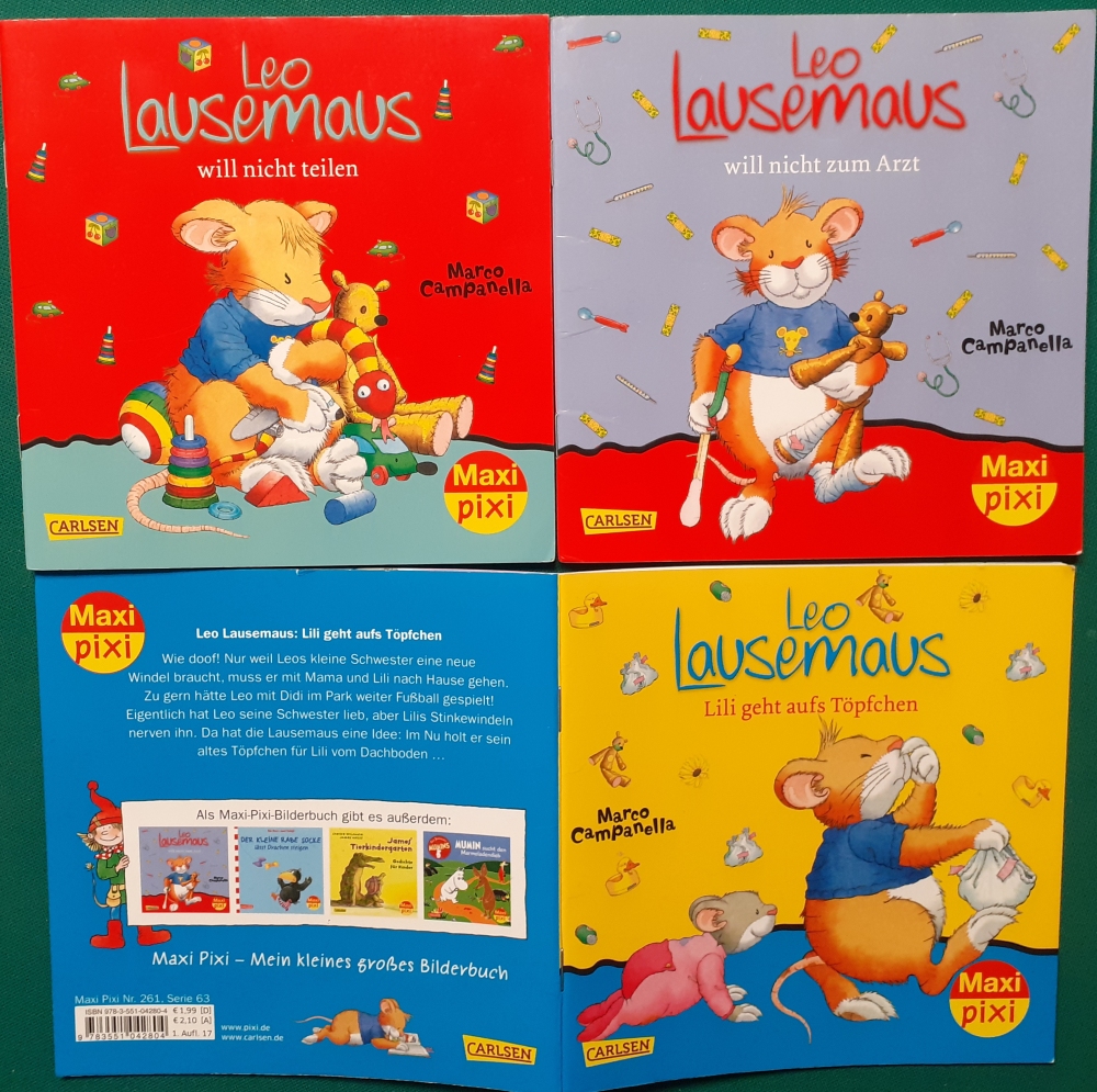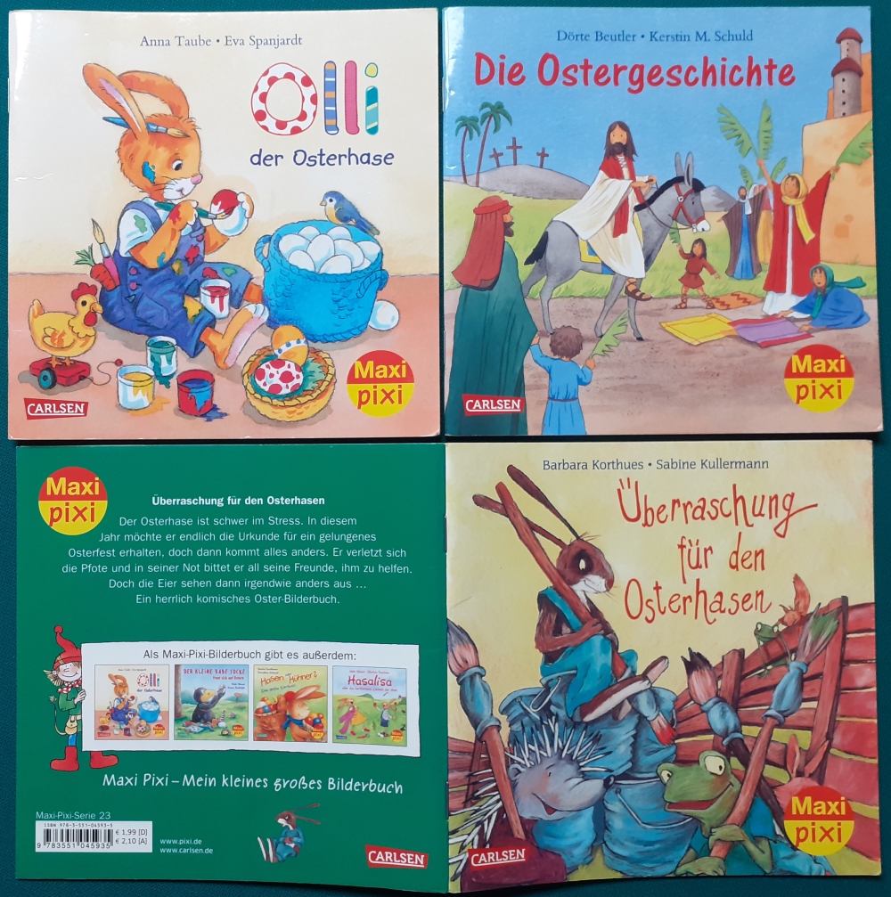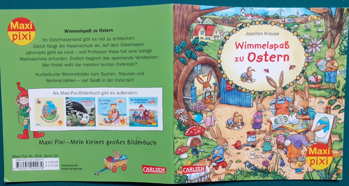 | Maxi-Pixi-Bücher aus dem Carlsen Verlag, Hamburg sind 15,7 x 15,7 cm groß und haben immer 24 Seiten. Die Bilderbücher im Softcover bieten Leseförderung, viel Spaß und eignen sich für alle Kinder, die gerne Bilder angucken und sich vorlesen lassen. | |
