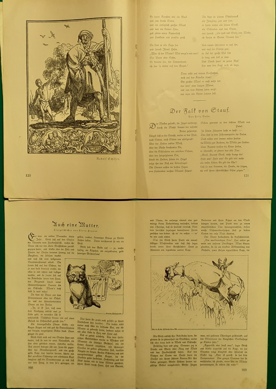 Peter Dörfler mit Bildern von Käthe Kollwitz: Ein Mutterkind; Walter von Molo: aus Schillers Jugendzeit; Clara Hepner mit Bildern von Norbertine von Breßlern-Roth: Zwei Schiffsbrüchige; Detlev von Liliencron. Das taubstumme Kind |