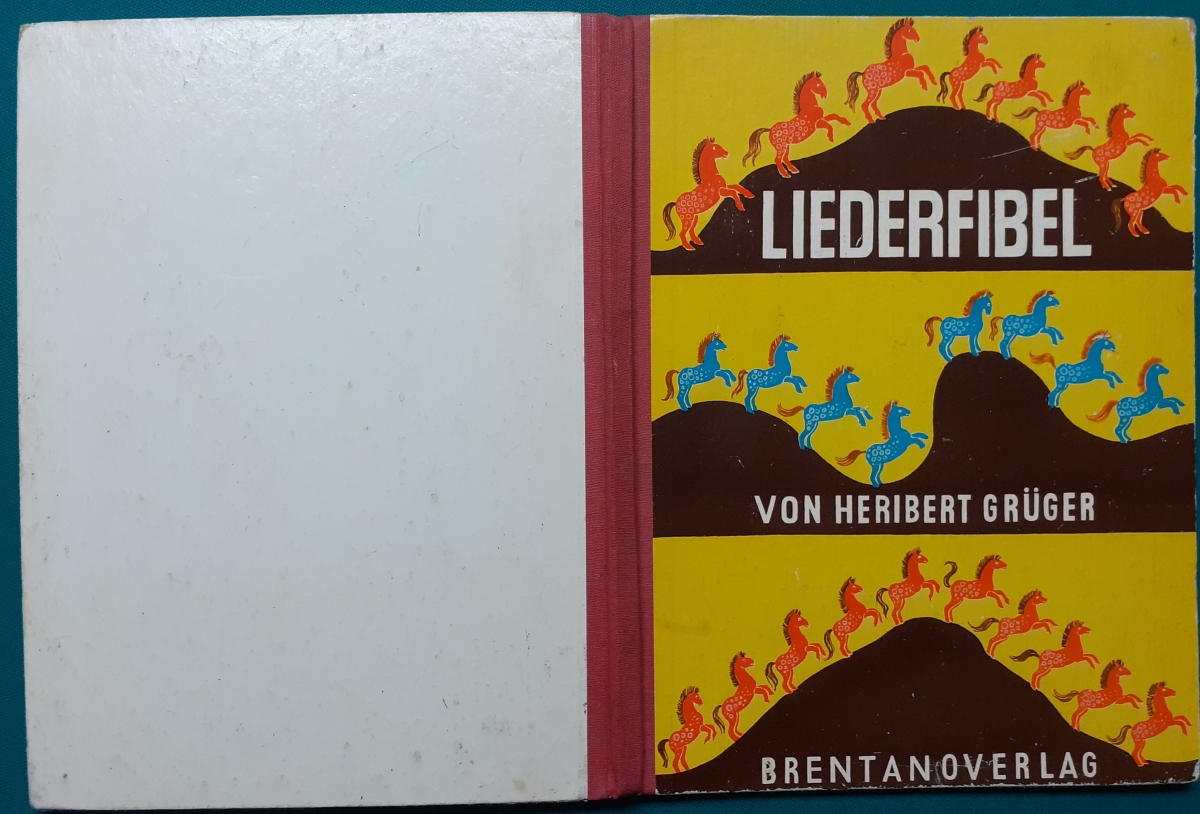 Liederfibel von Heribert Grüger; Brentano Verlag, Stuttgart; Ausgabe unter alliierter Kontrolle von 1949, 40 Seiten; sehr schöne Illustrationen von Johannes Grüger; Leinenrücken mit lackiertem festen Hartpappeinband im Format 26,5 x20 cm; an den Buchkanten bestoßen; innen ein Blatt im Gelenk innen mit Tesafilm stabilisiert; sonst Bindung und alle Blätter fest und insgesamt noch recht guter altersgemäßer Zustand Zum Inhalt: Preis: 9 EUR Hier zur Illustratoren-Galerie mit typischen Arbeiten von Johannes Grüger |