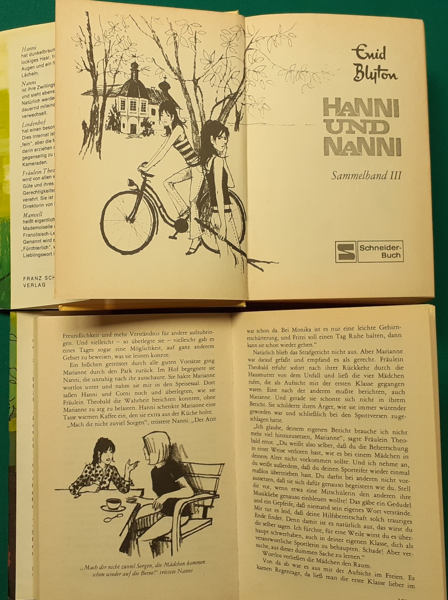 Blyton: Sammelbände im zweiten Cover-Design (siehe oben) Bände aus den 1960er und 1970er Jahren Hardcover mit Hochglanz-Schutzumschlag im Format 19 x 13 cm, Illustrationen der verschiedenen Bände von Nikolaus Moras, Erich Hölle und Ulrike Zehe-Weinberg; je etwa zwischen 300 und 450 Seiten, jeweils altersgemäßer befriedigender bis guter Zustand, Schutzumschlag z.T. beschädigt Sammelband 1: