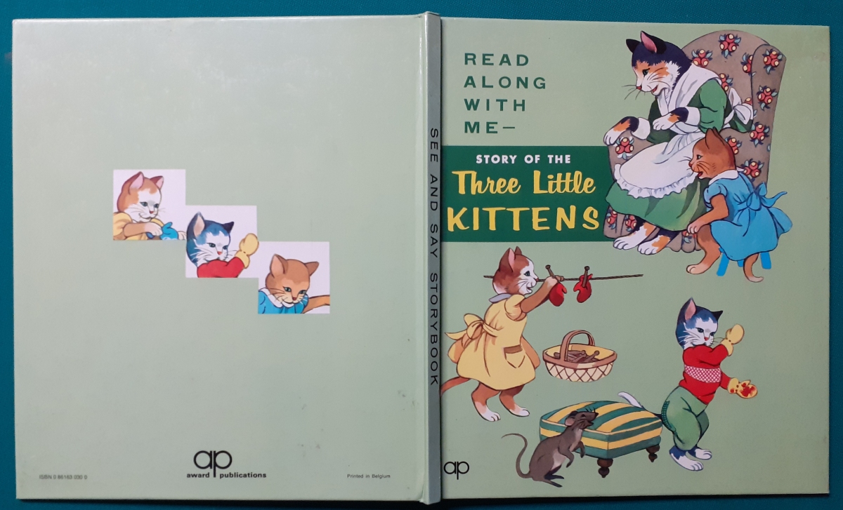 Story Of The Three Little Kittens award publications; Ausgabe um 1980, ca. 30 Seiten - nicht paginiert; hochwertig aufgemachte Ausgabe im festen rundum lackiertem Hardcovereinband im Format 25,5 x 22 cm; mit wunderschönen durchgehend farbigen Abbildungen von Tom und Blonnie Holmes; sehr guter altersgemäßer Zustand Preis: 6 EUR |