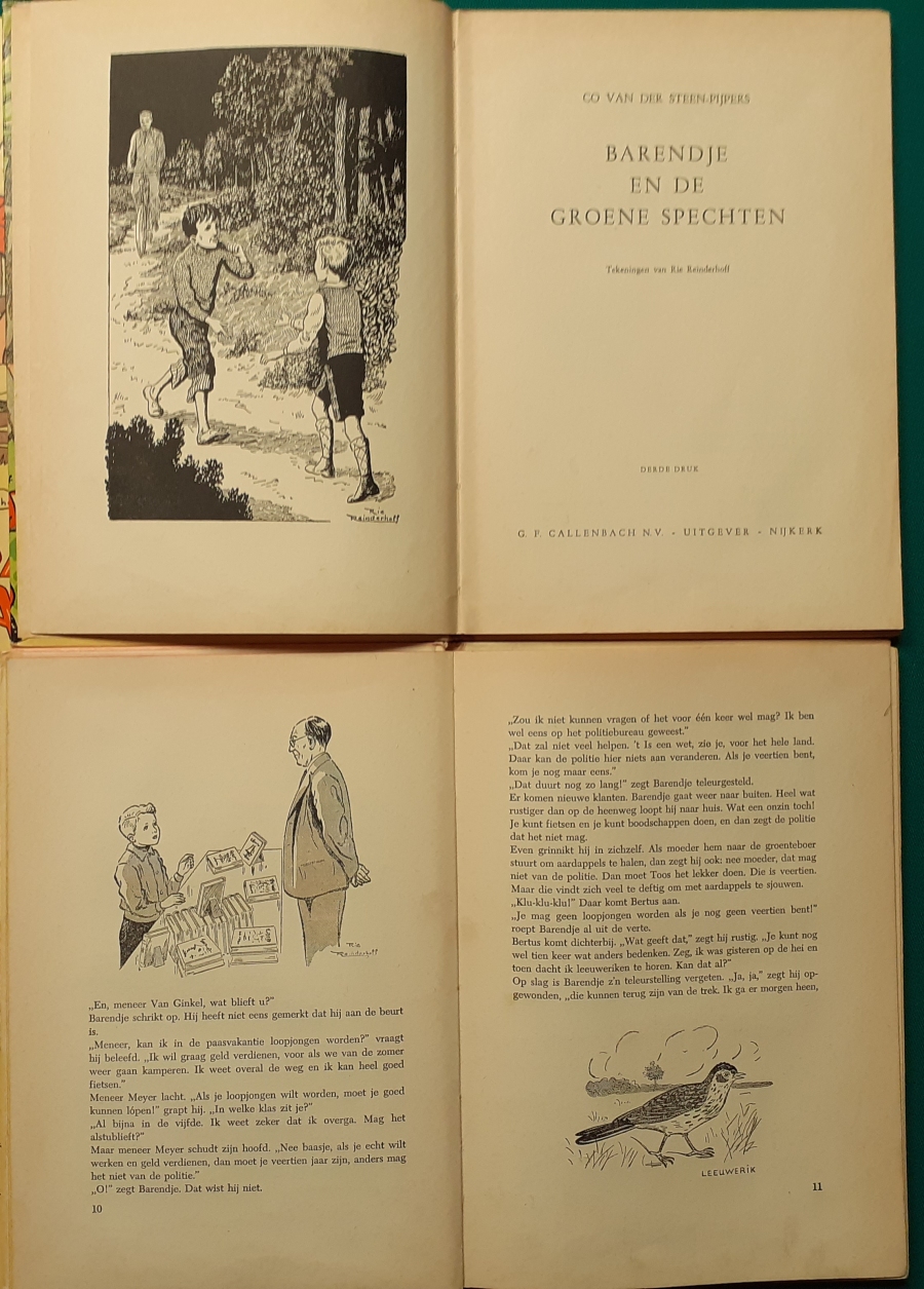 Band 7: Co van der Steen-Pijpers: geb. in Nijkerk am 1. Oktober 1914, gest. am 26. Dezember 1989. Autorin von Kinderbüchern. Die Geschichten in ihren Büchern basieren oft auf wahren Begebenheiten. Marie Louise (Rie) Reinderhoff (geb. am 10. April 1903 in Den Haag; gest. am 15. März 1991 ebenda) war eine niederländische Illustratorin und Buchcovergestalterin. Sie war außerdem eine begabte Malerin. Im Laufe ihrer Karriere illustrierte Reinderhoff über hundert Bücher – hauptsächlich Kinderbücher – und entwarf auch deren Einbände. |