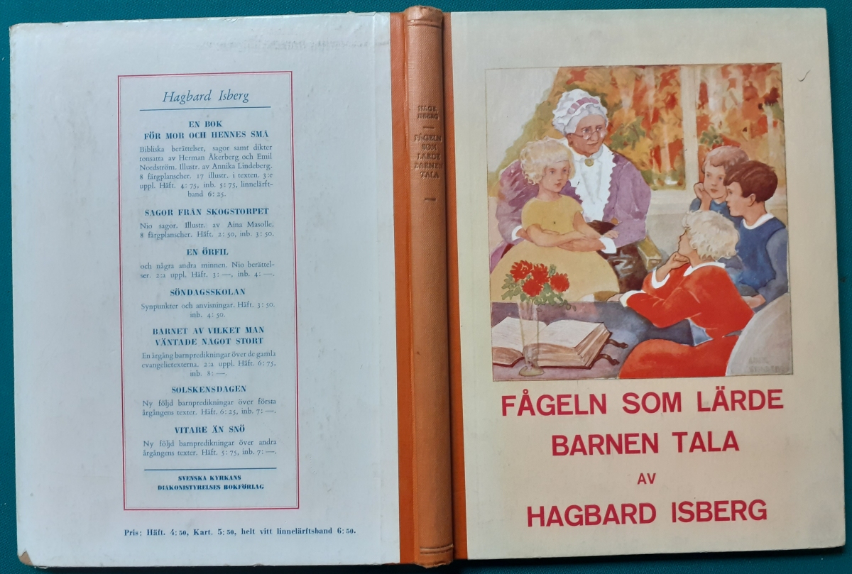 Hagbard Isberg: Svenska Kyrkans Diakonistyrelses Bökförlag; Stockholm, Ausgabe von 1937, wunderschöne Bilder von Aina Stenberg-Masolle - Musikstücke (mit Noten) von Herman Åkerberg; ca. 130 Seiten in schwedischer Sprache; Leinenrücken mit sehr festem Hartpappeinband im Format 23 x 17 cm; etwas an den Buchkanten bestoßen; sehr guter altersgemäßer Zustand Preis: 6 EURO Karl Hagbard Vilhelm Isberg , geboren am 14. Juli 1880 in Malmö, gest. am 26. Januar 1960, war ein schwedischer Priester. Aina Gerda Lucia Masolle, geboren 1885 in Stockholm und gestorben 1975. Sie hat an der Kunstakademie in Stockholm sowie in England und Frankreich studiert. Sie hat vorwiegend Kinderbücher illustriert. |