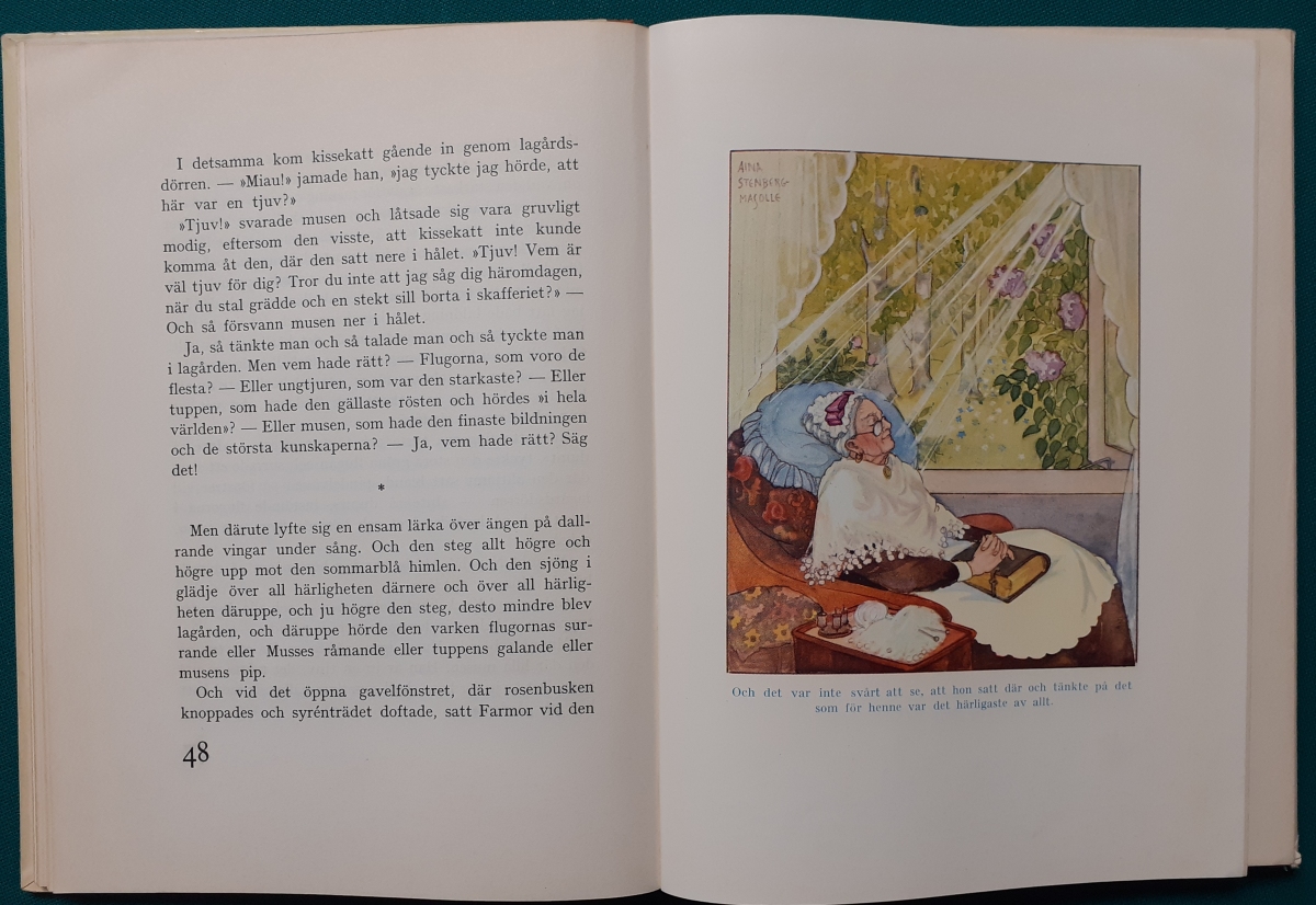 Ottilia Adelborg: Bonnier Verlag, Stockholm, Originalausgabe von 1968, Illustrationen der Autorin; ca. 50 Seiten - nicht paginiert - in schwedischer Sprache; Leinenrücken mit festem Hartpappeinband im Format 22 x 18,5 cm; an den Buchkanten bestoßen; Einband fleckig, auch innen einige braune Flecken; Bindung im Gelenk etwas locker - aber alle Blätter fest; insgesamt gepflegter und guter altersgemäßer Zustand Preis: 9 EURO |