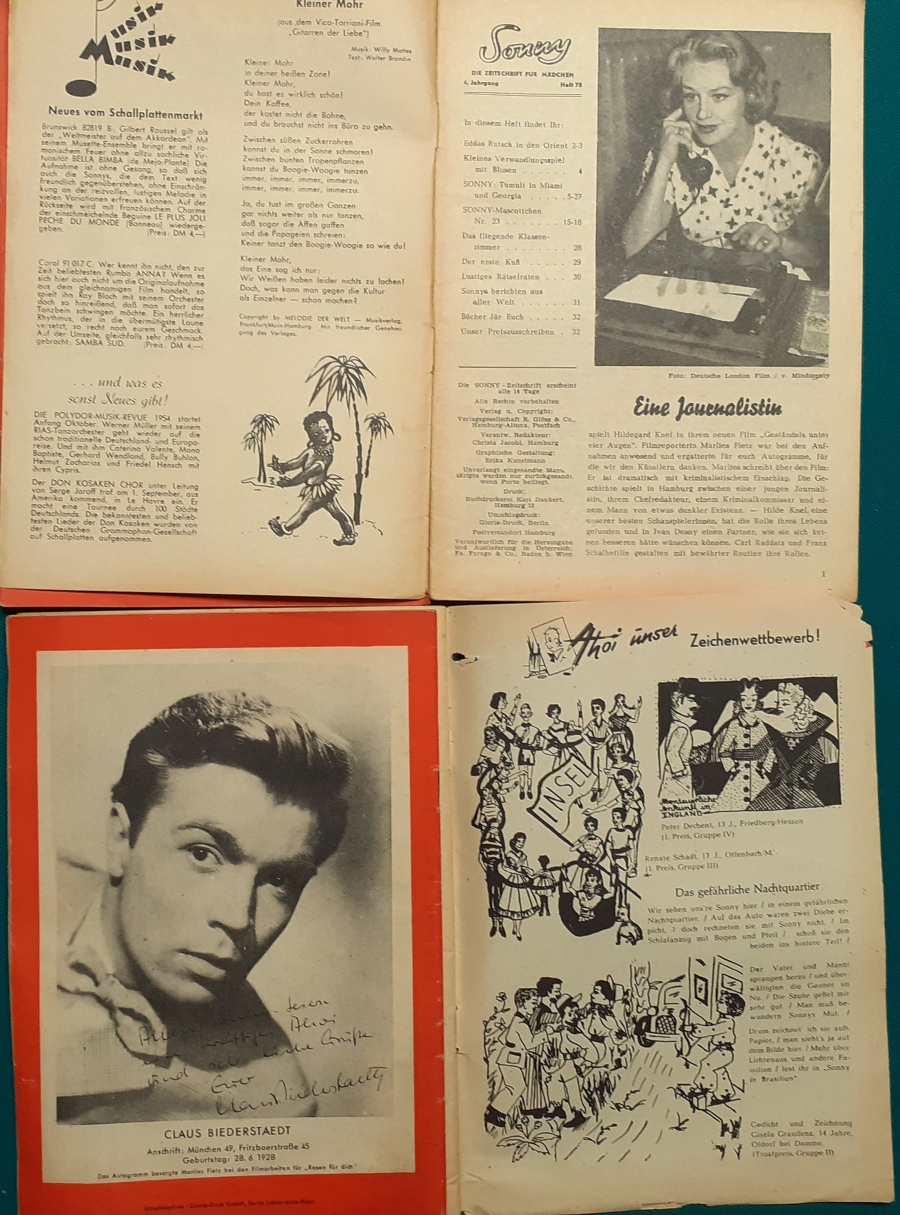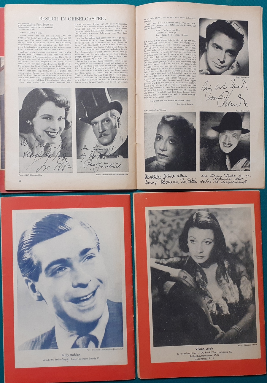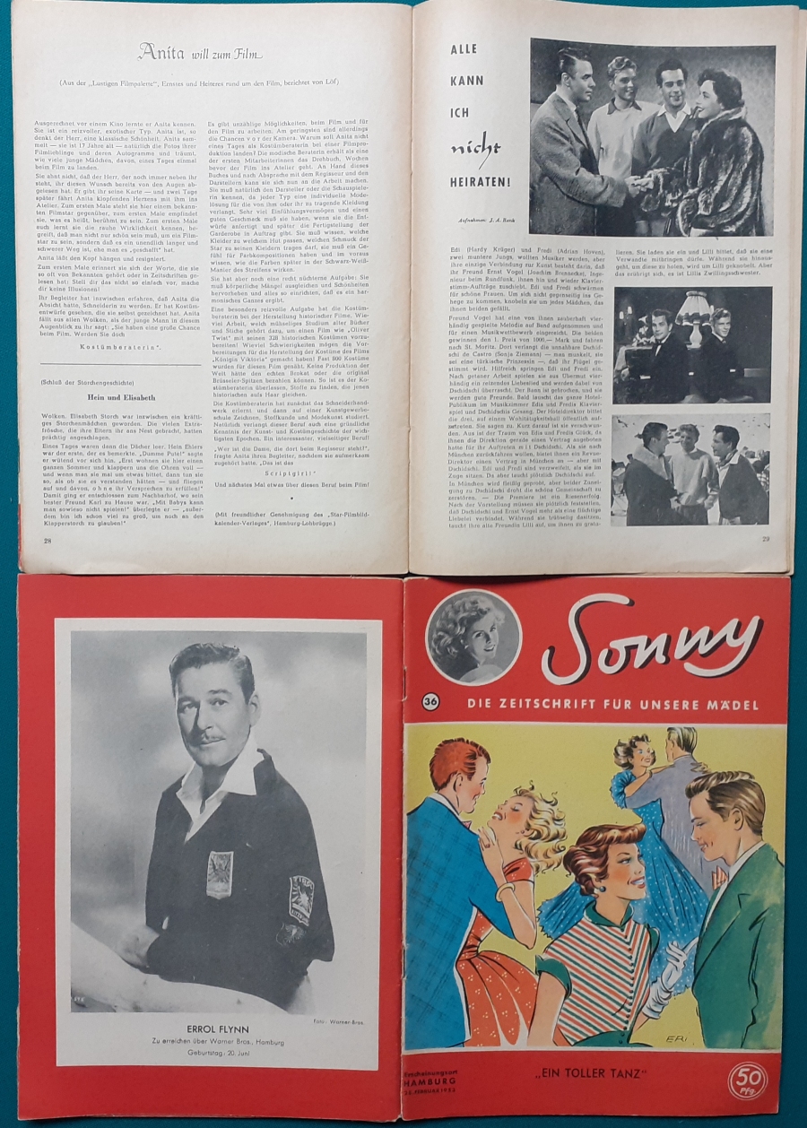 | 52 | Sonnys sechzehnter Geburtstag | Artikel zu Terence Morgan und Phyllis Calvert; Fotoporträt von Hannelore Bollmann auf hinterem Einbandcover; guter altersgemäßer Zustand | 5 |