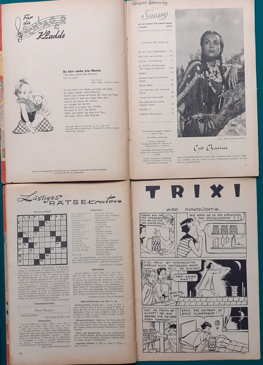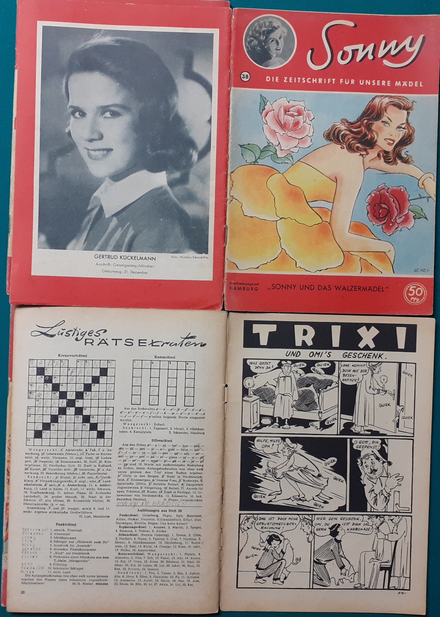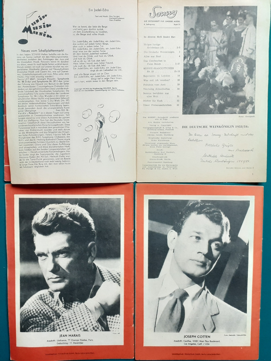 | 52 | Sonnys sechzehnter Geburtstag | Artikel zu Terence Morgan und Phyllis Calvert; Fotoporträt von Hannelore Bollmann auf hinterem Einbandcover; guter altersgemäßer Zustand | 5 |
