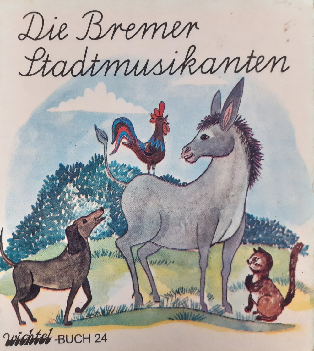 Einband-Illustration in Brüder Grimm: Die Bremer Stadtmusikanten;