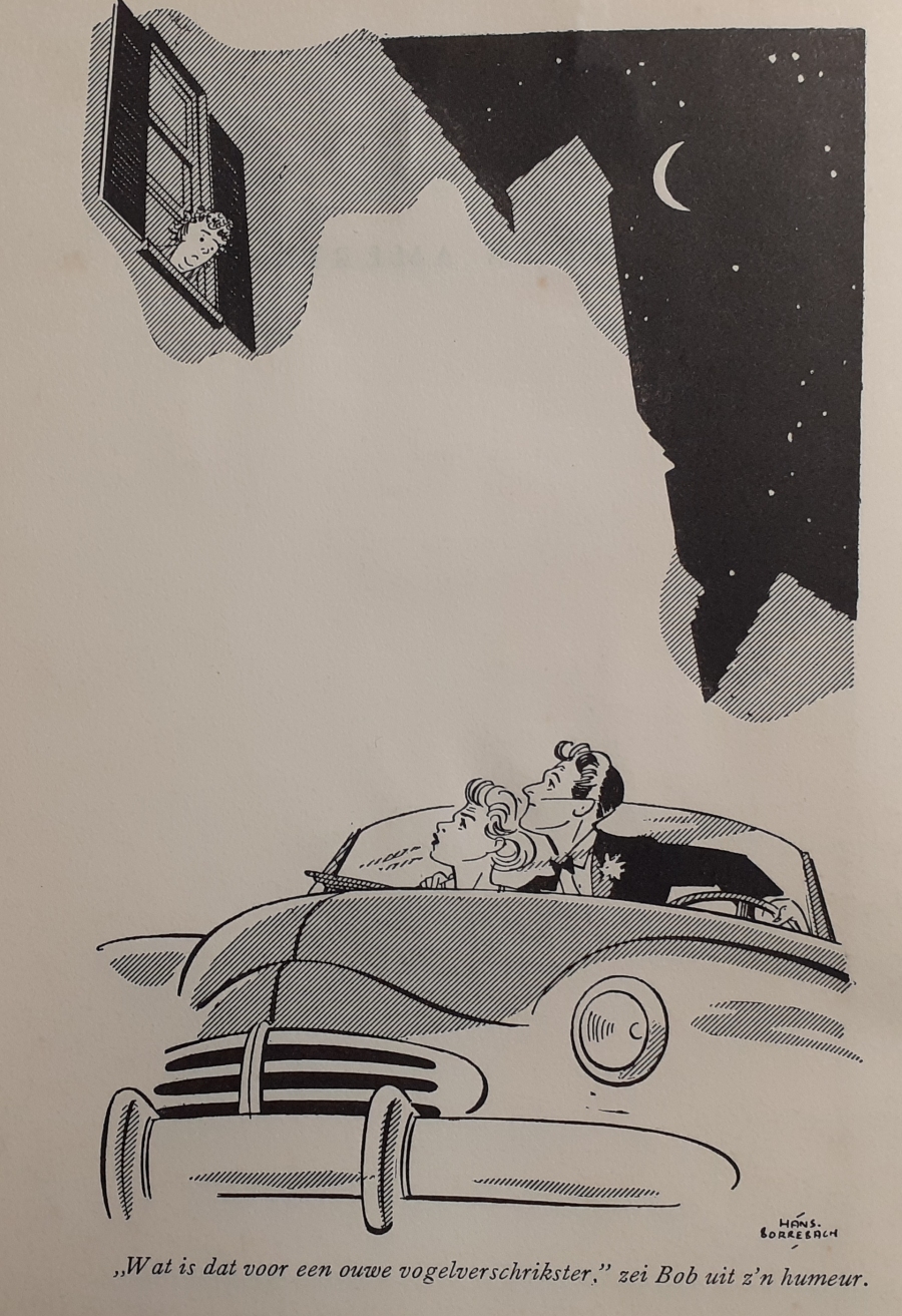 Henri Carl Johan Elisa (Hans) Borrebach (geb. in Den Haag am 5. Mai 1903; gest. am 15. Februar 1991 ebenda) war ein niederländischer Fotograf, Illustrator, Schriftsteller, Maler, Karikaturist, Comiczeichner und Buchcover-Designer. Borrebach studierte Architektur an der Königlichen Akademie der Bildenden Künste und unterrichtete dort auch Zeichenkunst. In den 1920er Jahren arbeitete er als Grafiker. Er entwarf Dutzende von Buchcovern, hauptsächlich für Kinder- und Mädchenbücher. Sein Stilwandel vor und nach dem Zweiten Weltkrieg ist bemerkenswert. Der Grund für seine neue Zeichentechnik war seine Hinwendung zu einem aus Amerika importierten Werbestil. Borrebach war zweimal verheiratet und lebte in Frankenslag im Statenkwartier. |