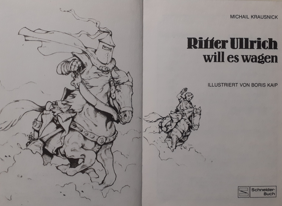 | Boris Kaip illustrierte die "Ritter Ullrich"-Bände von Michail Krausnick aus der Reihe der Schneider-Jugendbücher der 1980er Jahre. Darüber hinaus illustrierte er auch weitere Schneider-Jugendbücher aus dieser Zeit. Mehr Informationen über Leben und Werk des Illustrators haben wir leider nicht. | |