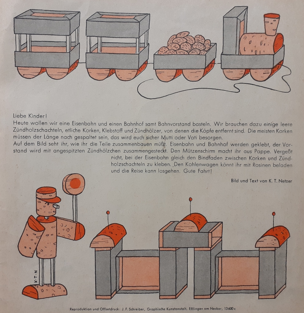einer Bastelanleitung für einen Bahnhof aus der Kinderzeitschrift "Teddy"