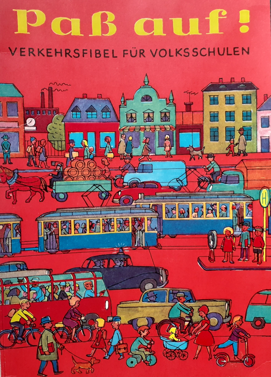 | Einband-Illustration der Verkehrsfibel für Volksschulen "Paß auf!"