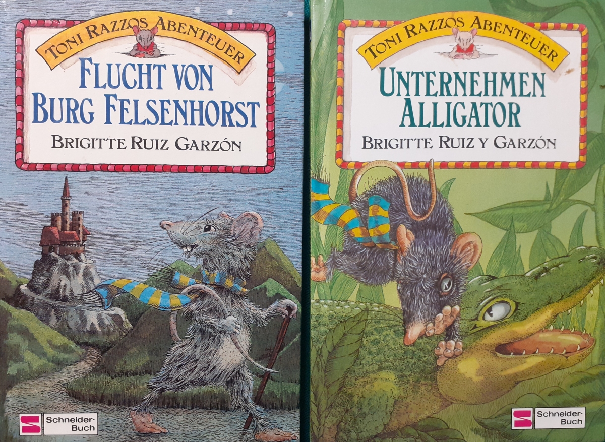 Einband-Illustrationen der Reihe "Toni Razzos Abenteuer"; von