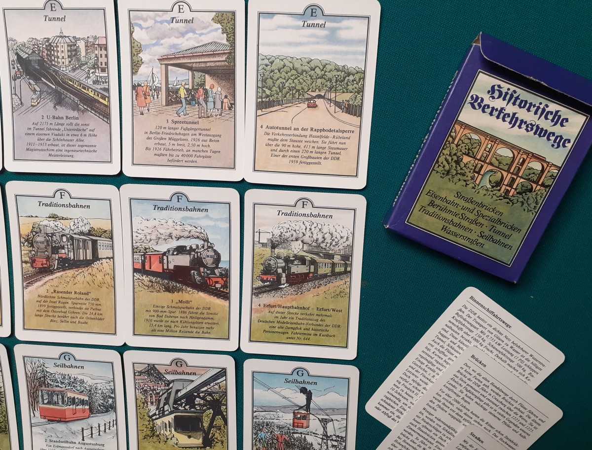 Lehrmittel, Pössneck, Ausgabe von 1986; siehe in unserem Schatzkästlein die Quartette zum Themenbereich Verkehr ... |