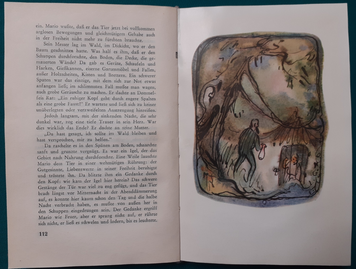 Waldemar Bonsels: Mario und die Tiere Pallas Verlag, Salzburg, Ausgabe von 1949, diverse schöne farbige Textillustrationen von Koloman Lenk;220 Seiten in moderner Druckschrift, fester Voll Leinen Einband, Buch in gutem altersgemäßen Zustand, Preis: 7 EURO |