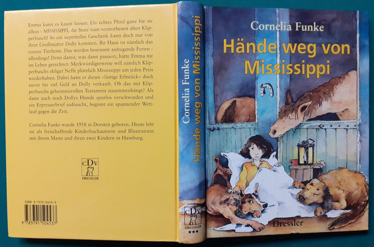 Cornelia Funke: Hände weg von Mississippi Cecilie Dressler Verlag Hamburg, Ausgabe von 1997, 192 Seiten; Illustrationen von der Autorin; rundum lackierter fester Hardcover Einband, sehr guter altersgemäßer Zustand Preis: 6 EURO |