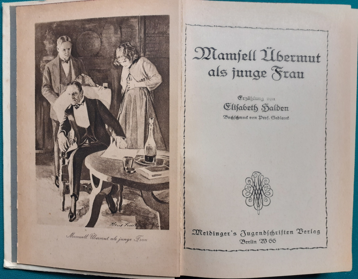 Elisabeth Halden: Evas Lehrjahre Erzählung für junge Mädchen Meidingers Jugendschriften Berlin, Ausgabe um 1930, 190 Seiten, Einband- und Titelillustration von Carl Benedek; Leinenrücken mit festem Hartpappeinband, Buchkanten nur leicht bestoßen, sehr guter und gepflegter altersgemäßer Zustand, Preis: 9 EUR Hier zur Illustratoren-Galerie mit typischen Arbeiten von Carl Fr. J. Benedek |