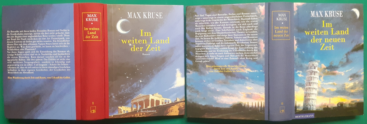 Werk von Max Kruse zur Geschichte der Menschheit: 1. Band: Im weiten Land der Zeit Roman über die Entwicklung der Menschheit im Abendland: Vom Urknall bis Galilei Bertelsmann Verlag, München, Ausgabe von 1997, 540 Seiten, Maxi-Format 22 x 16,5 cm; Leinenrücken mit wasserabweisendem festen Hardcover Einband; sehr guter altersgemäßer Zustand, 2. Band: Im weiten Land der neuen Zeit Roman über die Entwicklung der Menschheit im Abendland: Von Galilei bis heute Bertelsmann Verlag, München, Erstausgabe von 1998, 570 Seiten, Maxi-Format 22 x 16,5 cm; Leinenrücken mit wasserabweisendem festen Hardcover Einband; sehr guter altersgemäßer Zustand, Komplettpreis beider Bände: 19 EURO |