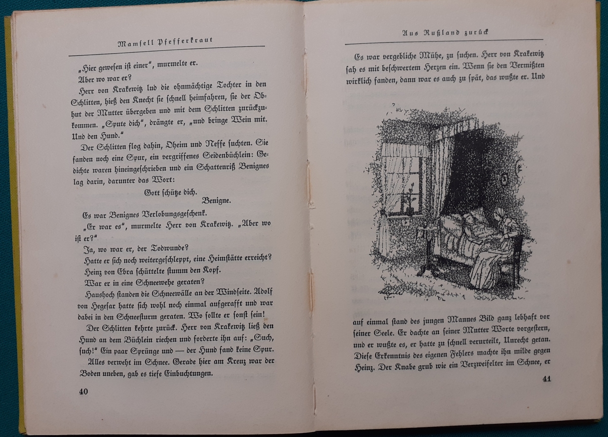Josephine Siebe: Die kleine Mamsell Pfefferkraut Herold Verlag Stuttgart, Ausgabe von 1936, mit einem farbigen Titelbild von Erich M. Simon und Textzeichnungen von R. Werner, 96 Seiten, Voll-Leinen-Einband, Einband leicht fleckig, innen sehr schön; insgesamt guter altersgemäßen Zustand Preis: 11 EUR |