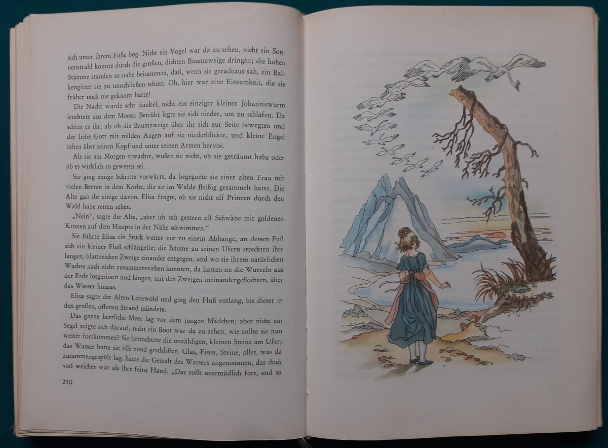 De vilda svannarna Opal Verlag; Ausgabe von 1984; ca. 30 Seiten in schwedischer Sprache - nicht paginiert; wunderbare farbige Abbildungen von Angela Barrett; rundum lackierter fester Hardcover-Einband im Format 22,5 x 15,5 cm; guter altersgemäßer Zustand mit Benutzerspuren, Preis: 6EUR Angela Barrett (geb. 1955) ist eine britische Künstlerin und Illustratorin. Sie hat Bilderbücher, Kinderbücher und Romane illustriert, darunter auch verschiedene Märchen. Barretts Werke sind hauptsächlich mit Wasserfarben, Gouache, Buntstiften und Tinte gestaltet. Sie ist bekannt für ihre historischen Stücke und die Recherche, die sie in ihre Werke einfließen lässt |