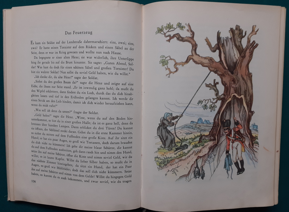 Märchensammlungen von Andersen: Buch obere Abbildungen:Märchen von Hans Christian Andersen Sammlung von 15 Märchen mit Illustrationen von Theodor Hosemann, Graf Franz von Pocci, Ludwig Richter und Paul Thumann, Kinderbuchverlag Berlin; Ausgabe von 1978, 206 Seiten, Paperback Einband; an den Buchkanten bestoßen; insgesamt recht guter altersgemäßer Zustand, Preis 6 EUR Buch untere Abbildungen: Märchen von Hans Christian Andersen Sammlung von 18 Märchen mit Illustrationen von A. W. Baum, Deutsche Buchgemeinschaft Berlin; Ausgabe um 1920, 212 Seiten, Lederrücken mit festem Hartpappeinband; an den Buchkanten bestoßen; innen ziemlich gelbfleckig; insgesamt aber befriedigender altersgemäßer Zustand, Preis 6 EUR |