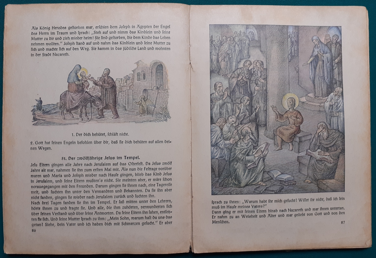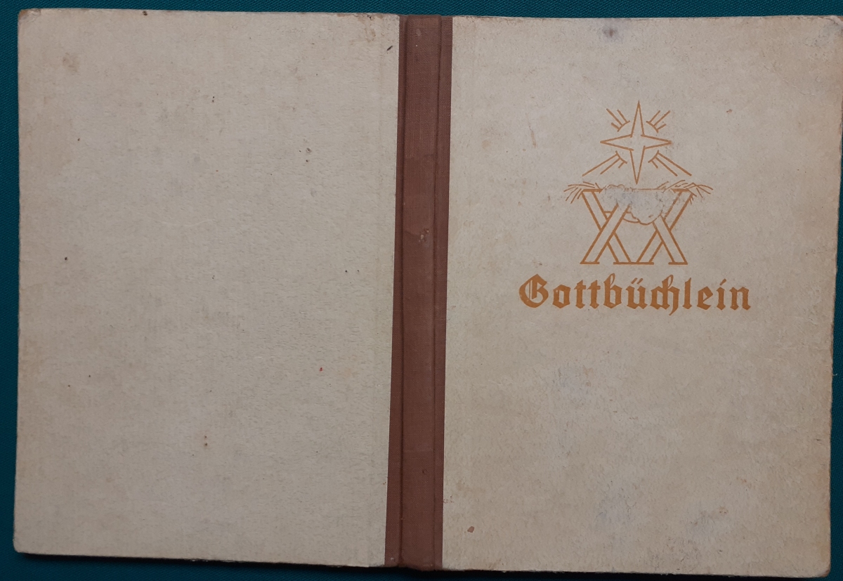 Gottbüchlein von Ernst Veit; Paul Müller, Verlag, München, Hrsg. Evangelisch-Lutherische Kirche in Bayern; Ausgabe von 1954, 144 Seiten, sehr schöne Bilder von Bruno Goldschmitt; Leinenrücken mit festem Hartpappeinband; an den Buchkanten bestoßen; Buch in sich etwas verzogen; Einband etwas berieben und fleckig; innen sauber und gepflegt; insgesamt befriedigender altersgemäßer Zustand, Preis: 6 EURO |