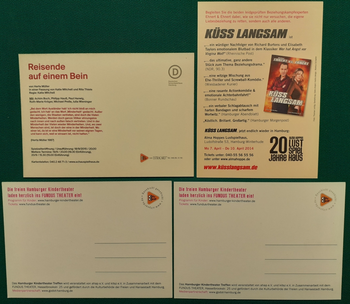 Werbepostkarte für das Theaterstück: Reisende auf einem Bein
