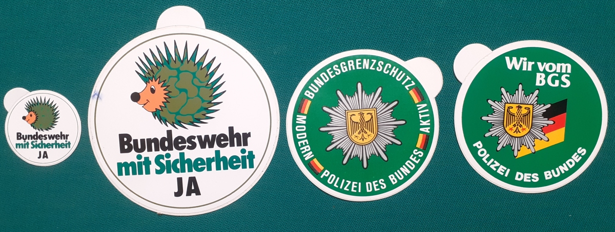 Ausgabe um 1988, Formate Durchmesser 9 bis 14 cm; selbstklebend, sehr guter altersgemäßer Zustand; Preis für alle vier Sticker zusammen |