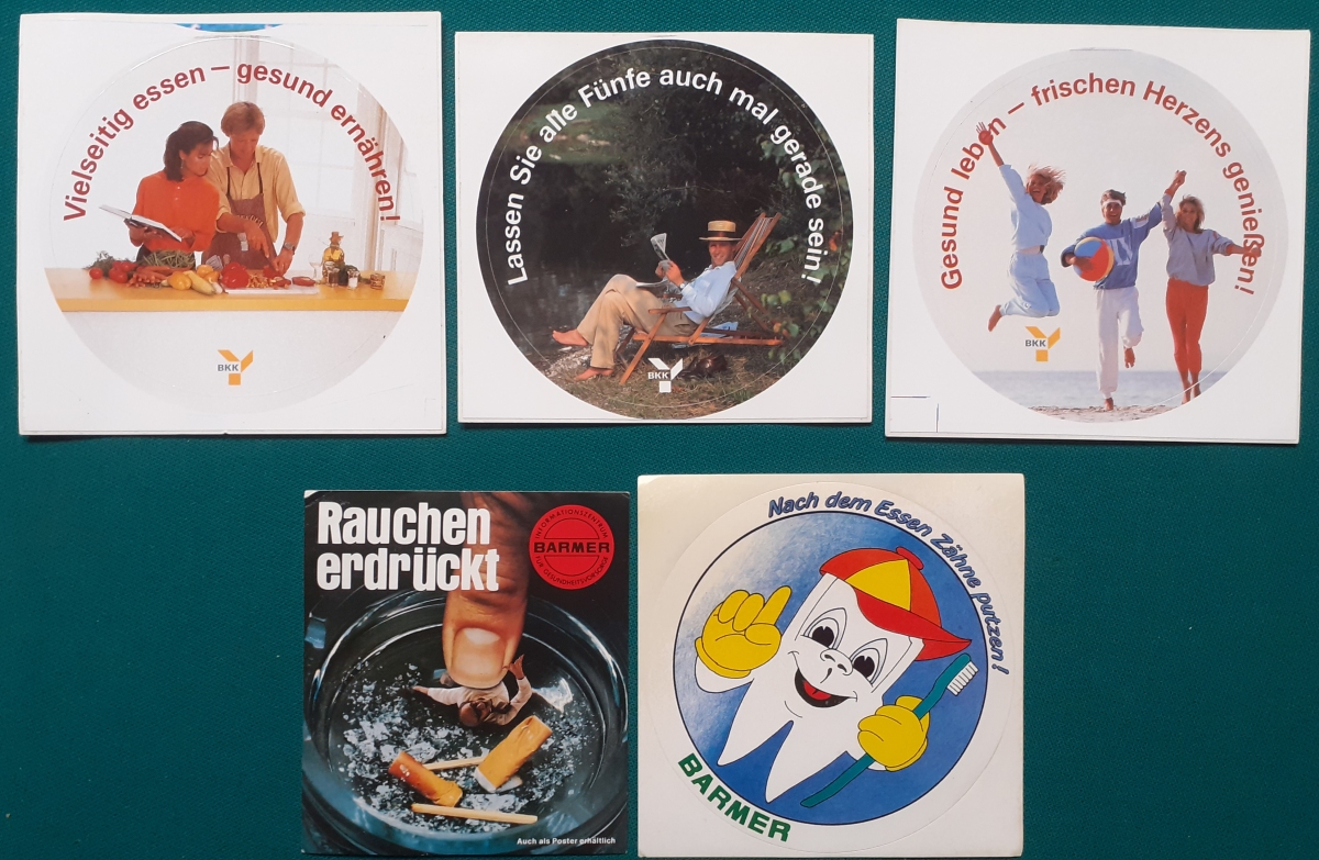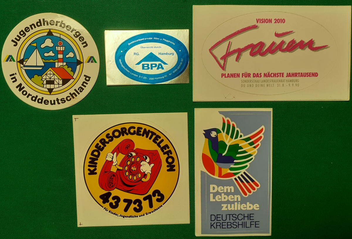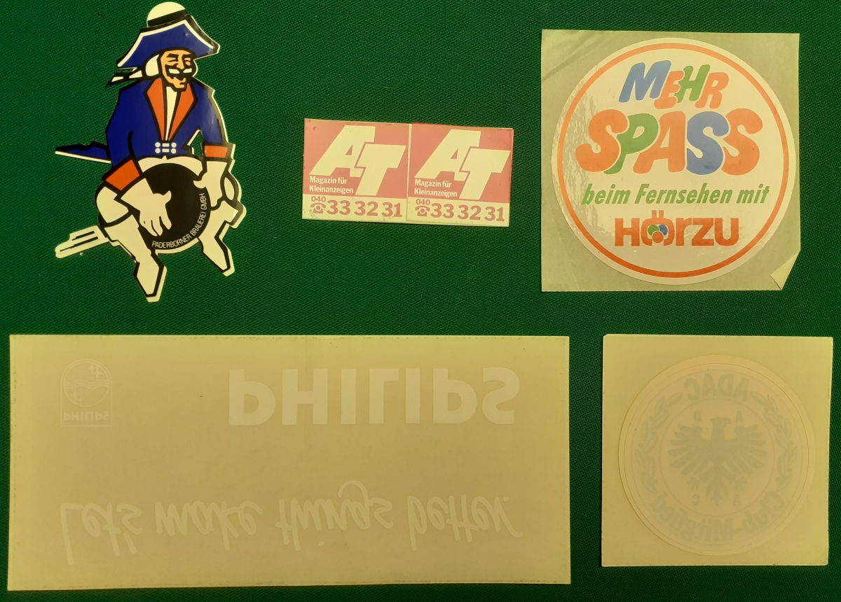 Ausgabe um 1988, Format zweiter Sticker von links: Länge 13 cm; selbstklebend, sehr guter altersgemäßer Zustand; Komplettpreis |