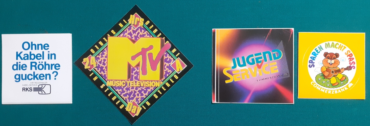Ausgabe um 1988, Format 10 x 10 cm und 10 x 5 cm; selbstklebend, sehr guter altersgemäßer Zustand; Preis für alle vier Sticker zusammen |
