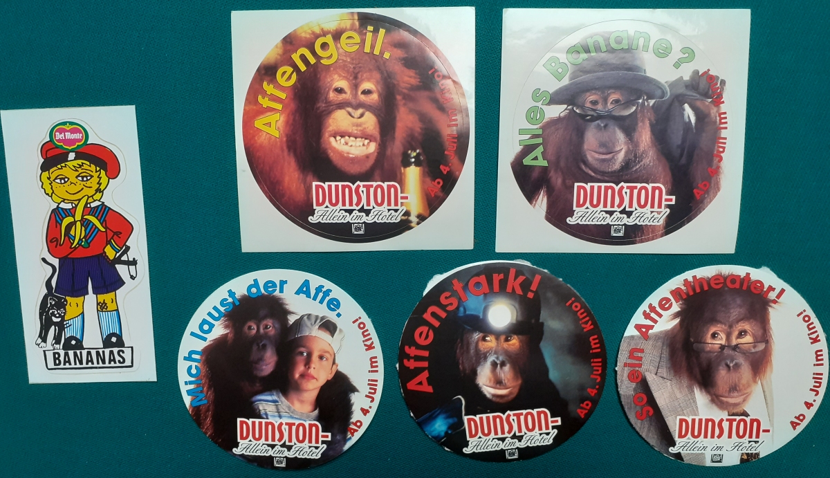Fünf Werbesticker für den Kinofilm Dunston - Allein im Hotel |