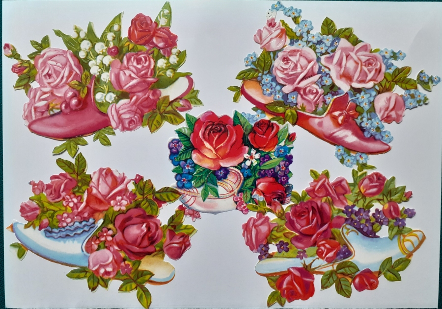 Art-Nr. ob18n, Preis: 2 EURO für 5 Stück 5 Blütenarrangements im Schuh