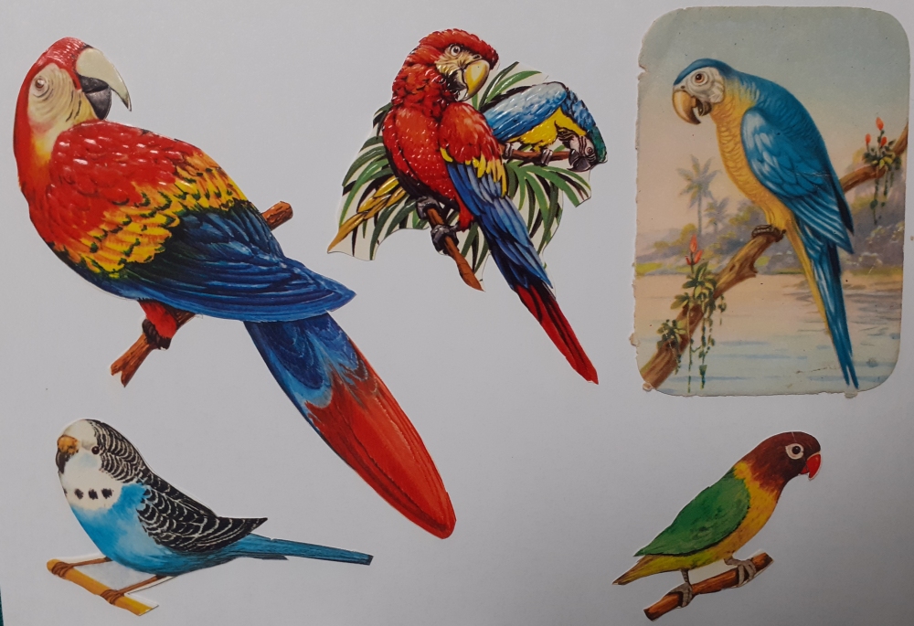 Art-Nr. ob26n; Preis: 3 EURO für 5 Stück 5 x papageienartige Vögel