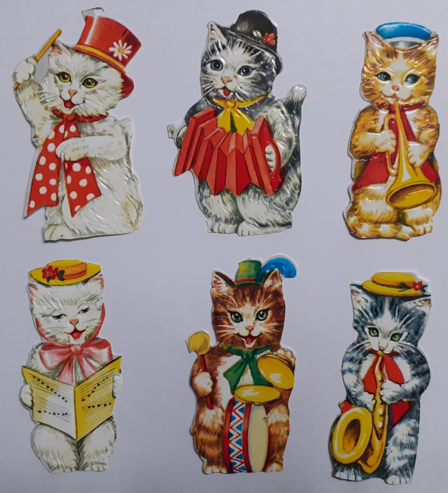 Art-Nr. ob28n; Preis: 2 EURO für 6 Stück 6 Katzen als Musikanten