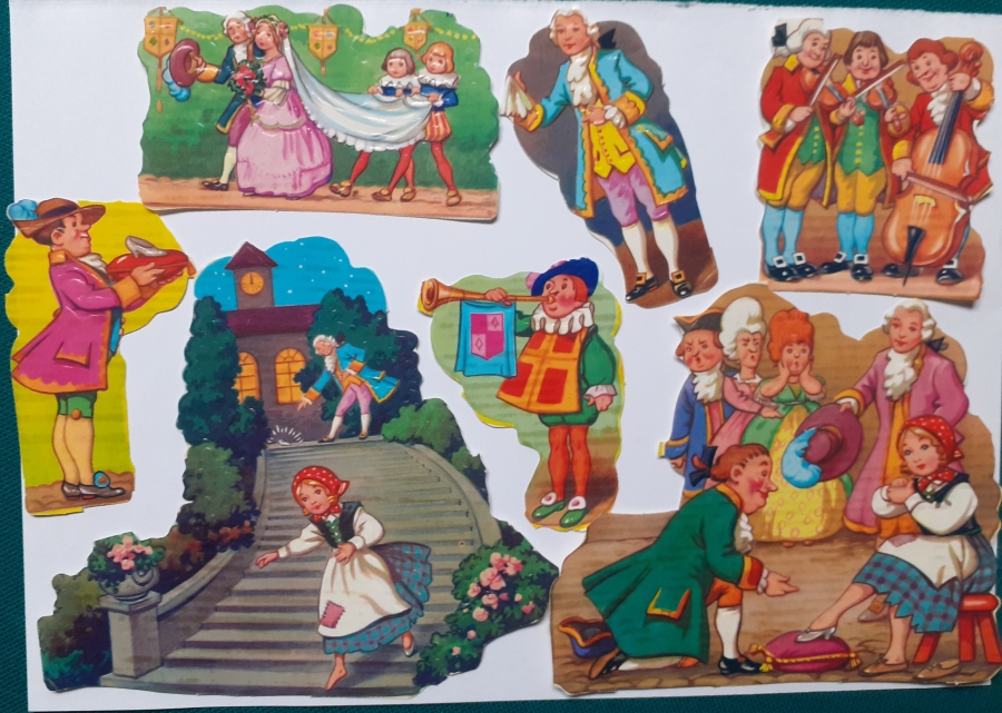 Art-Nr. ob32n; Preis: 3 EURO für 7 Stück Sieben Motive zum Märchen Aschenputtel