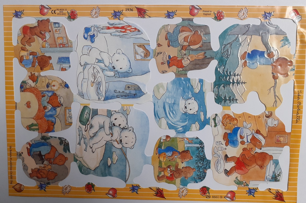 Größe des Bogens: 24 x 16 cm Es handelt sich um 10 Bärenmotive im Original-Rahmen (siehe Abbildung); der Bogen ist neuwertig in passender Klarsichthülle verpackt |