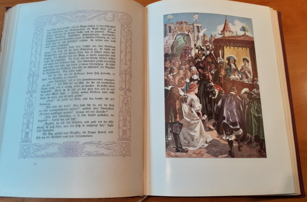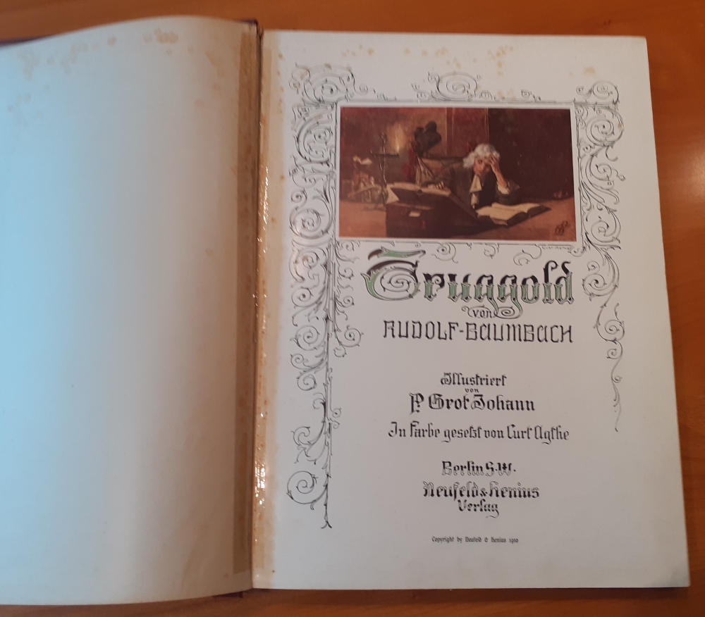 illustriert von P. Grot Johann, in Farbe gesetzt von Curt Ugthe, Neufeld & Heniius Verlag, Berlin; Ausgabe von 1910, Voll-Leinen, 29 x 22 cm, oben Goldschnitt, vordere Umschlagseite zum Buchrücken mit Klebeband geklebt, sonst Bindung o.k., altersgemäßer guter Allgemeinzustand, Preis 15 EUR |
