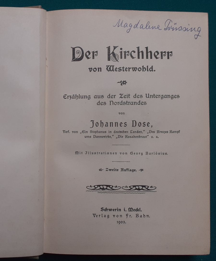 Johannes Dose: Bahn Verlag Schwerin, Ausgabe von 1903, mit Illustrationen von Georg Barlösius, 280 Seiten; Voll-Leinen, sehr dekorativer Einband; guter altersgemäßer Zustand, Preis: 6 EURO |