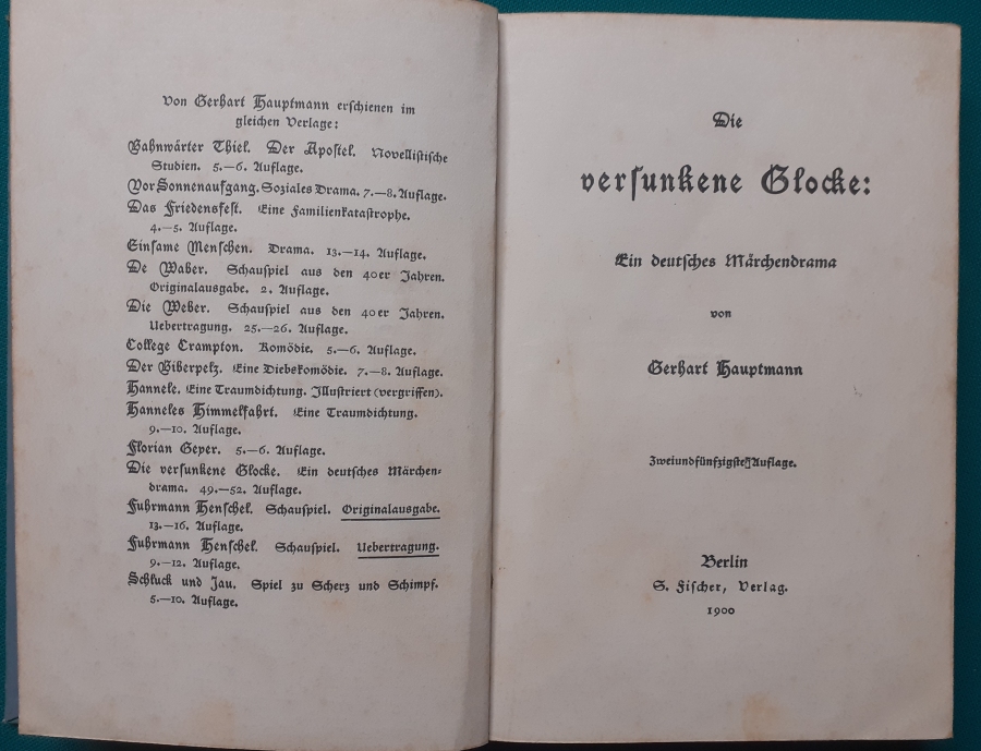 Gerhart Hauptmann: Die versunkene Glocke Preis: 9 EURO |