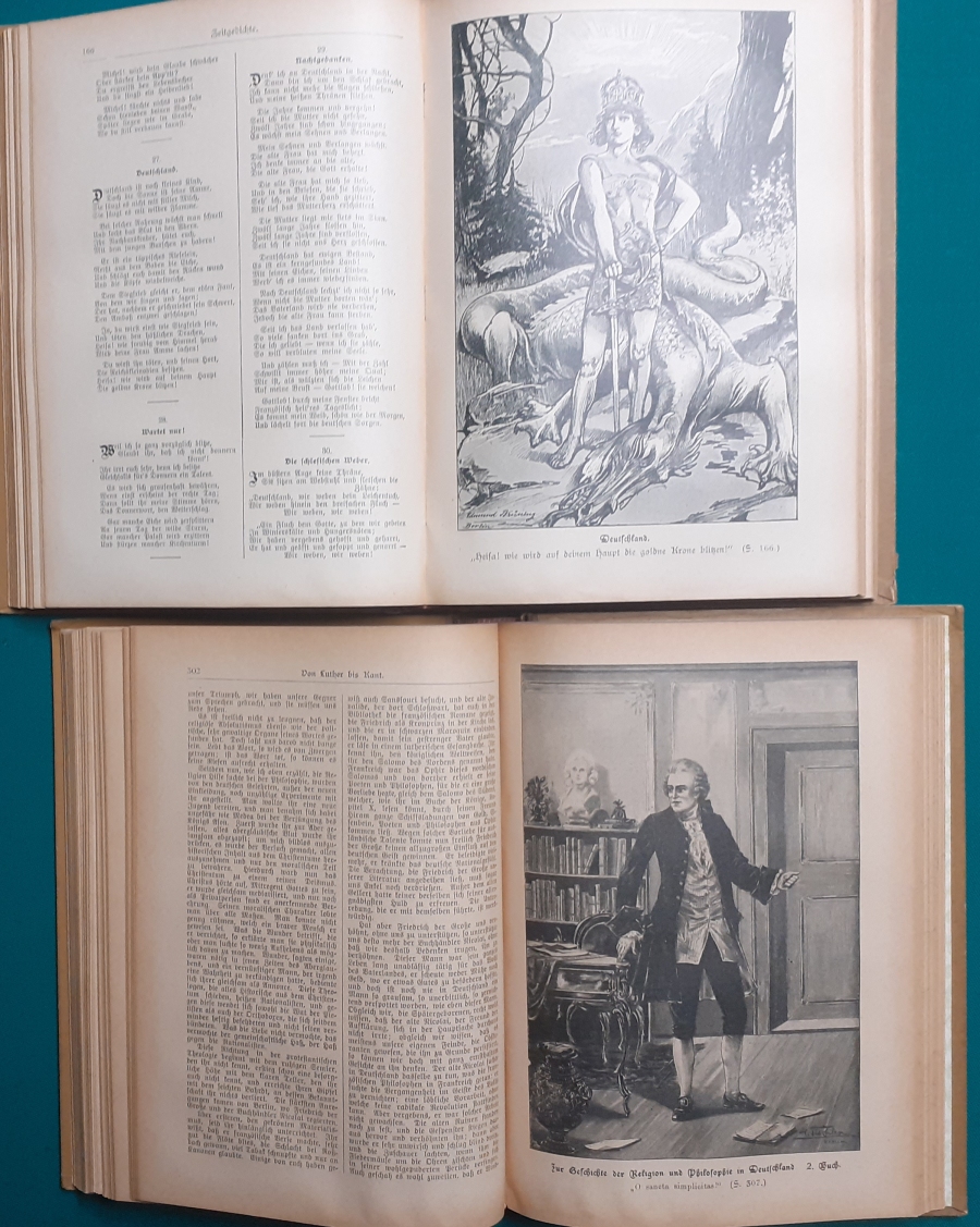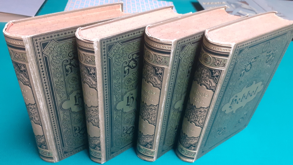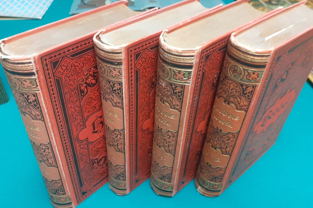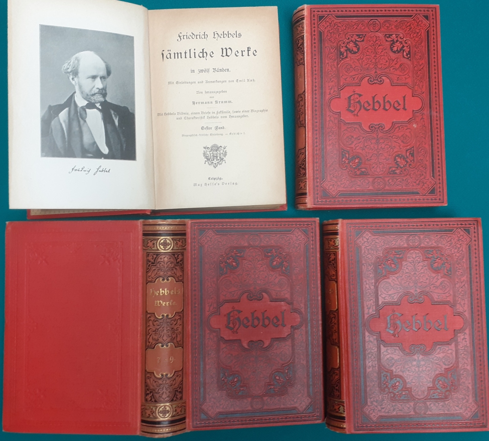 Hesses Verlag Leipzig, Ausgabe von 1891, zusammen 2990 Seiten, Frakturschrift, 17 x 12,5 cm, jeweils roter Voll-Leinen-Einband mit Goldschrift auf dem Rücken, Buchbindung o.k., Zustand altersgemäß gut bis sehr gut, Preis komplett: 24 EUR |