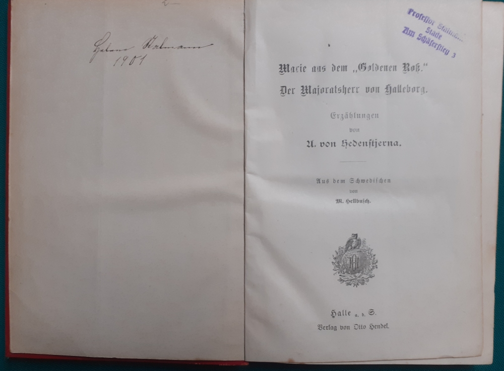 Freiherr von Hedenstjerna: Hendel Verlag Halle; Ausgabe um 1900, 176 Seiten; sehr dekorativer Voll-Leinen-Einband; guter altersgemäßer Zustand Preis 9 EUR |