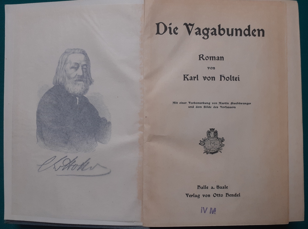 Holtei: Die Vagabunden Roman Hendel Verlag Halle; Erstausgabe von 1911, 620 Seiten; fester Voll-Leinen-Einband; guter altersgemäßer Zustand Preis 6 EUR |