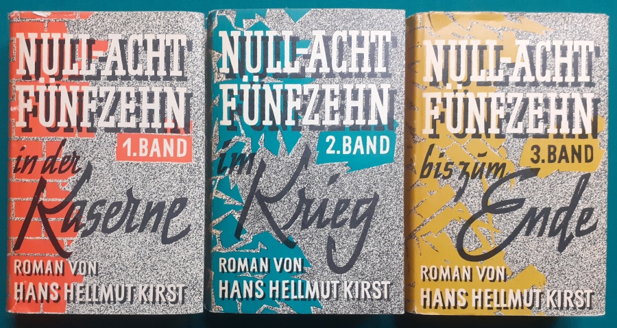 von Null-Acht Fünfzehn Verlag Kurt Desch, Wien u.a., Erstausgabe von 1955, drei Voll-Leinen-Bände im Format 19 x 12,5 cm, jeweils mit Schutzumschlag, je ca. 400 Seiten, altersgemäß guter Zustand, Preis komplett: 16 EURO |