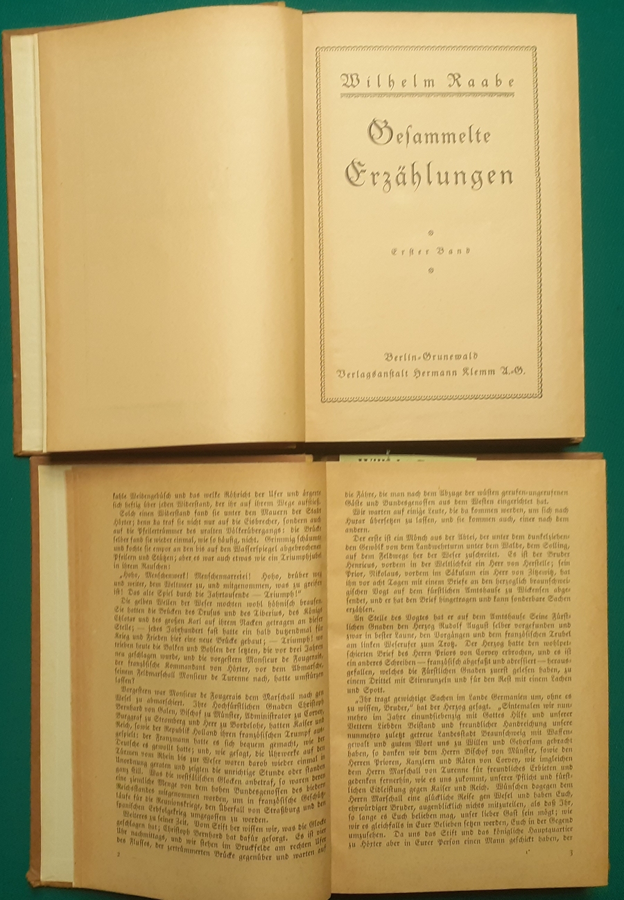 Werke in 12 Teilen (= 5 Bücher) Deutsches Verlagshaus Bong, Berlin u.a., Ausgabe um 1910, jeweils Lederrücken mit Lederecken und festem Hartpappeinband im Format 19 x 13 cm, Zustand altersgemäß gut, Preis komplett: 23 EURO |