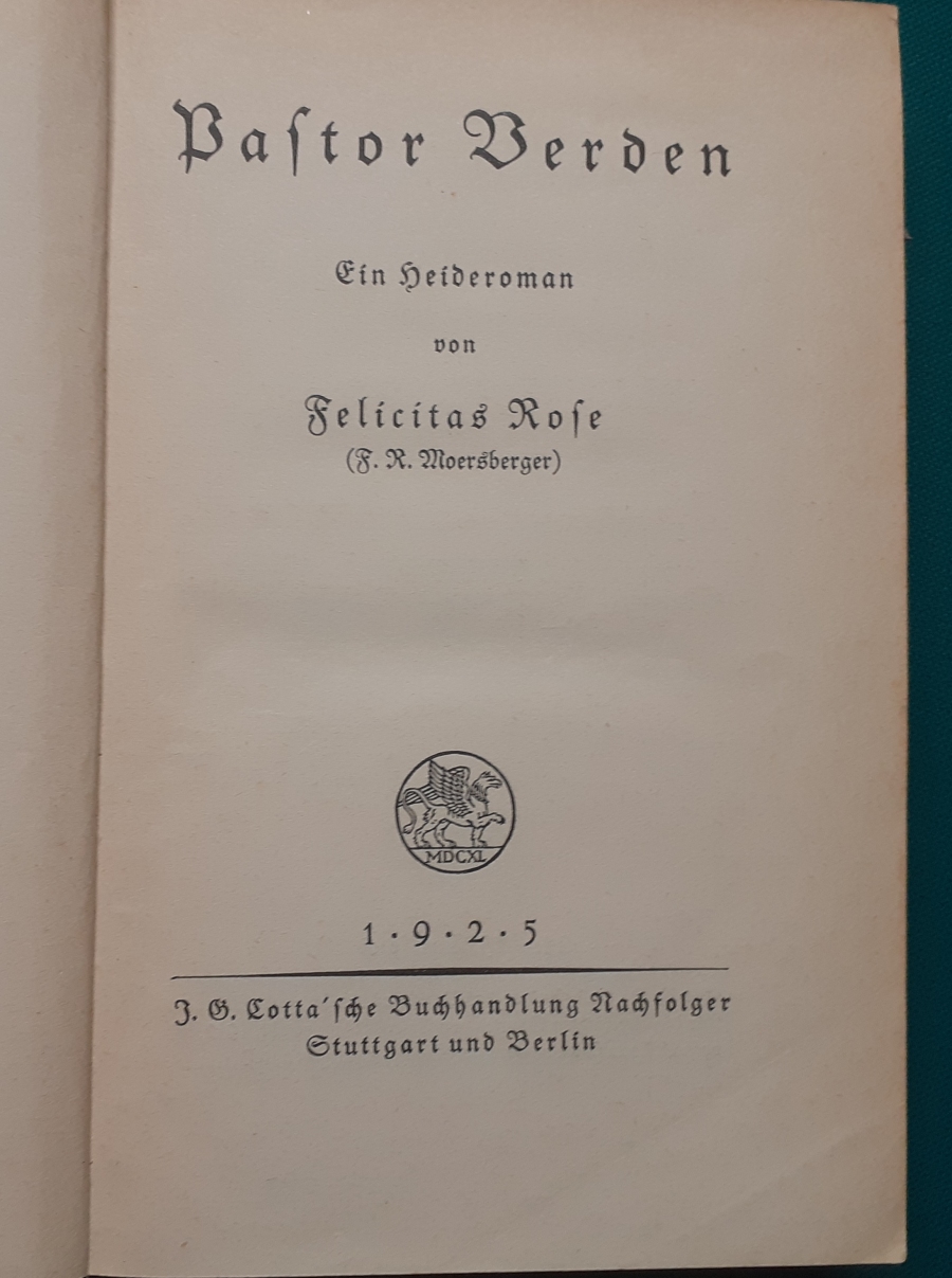 Cotta´sche Buchhandlung Nf., Stuttgart u.a., Ausgabe von 1923, 316 Seiten, Voll-Leinen, Einband fleckig, Buch in altersgemäßem guten Zustand Preis: 6 EUR |